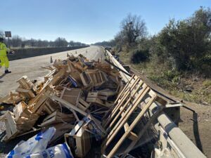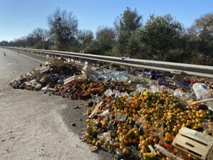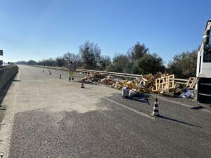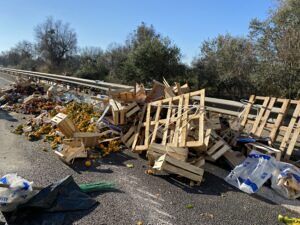 L’arteria stradale è stata chiusa al traffico per consentire le operazioni di rimozione del mezzo e non solo. Il camion, infatti, trasportava cassette di frutta che si sono riverse sul suolo ed è stato necessario togliere.