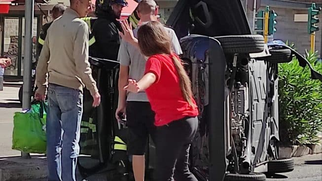 Hanno temuto il peggio gli automobilisti di passaggio sulla circonvallazione di Lecce, notando all’incrocio tra viale Leopardi e via San Domenico Savio un incidente stradale. Stando ad una prima ricostruzione dell’accaduto, una smart si è ribaltata, finendo contro il palo del photored che immortala le infrazioni sull’importante arteria della città.