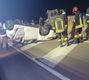 La donna ha tamponato la vettura che la precedeva e, probabilmente a causa dell’alta velocità di marcia, ha perso il controllo della propria auto e si è ribaltata finendo la sua corsa sullo spartitraffico che divide le corsie di marcia.