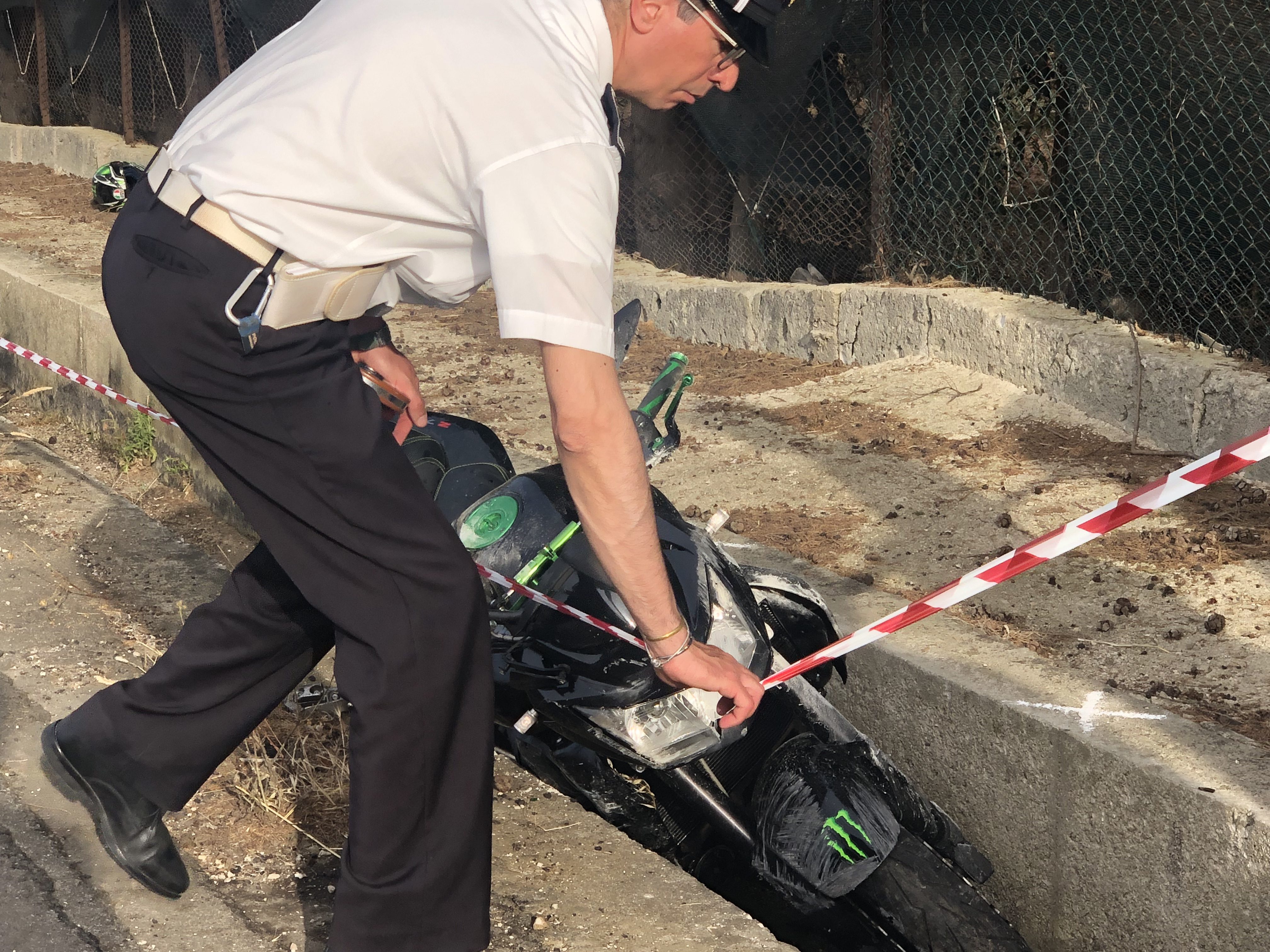 Tremendo l’impatto. Il motociclista e il suo veicolo, infatti, sono andati a finire in un canale che costeggia la strada. Da lì Lorenzo Carbone non è più uscito.
