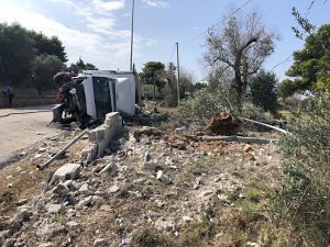 Il mezzo è comunque andato completamente distrutto come il muretto a secco sul quale ha terminato la sua corsa.
