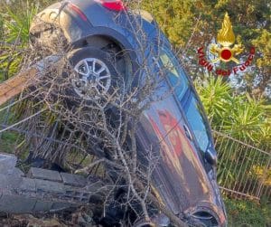 Nella carambola, un’autovettura alla cui guida c’era un 54enne ha terminato la sua corsa sulle inferriate di una recinzione arrampicandosi quasi su un albero.