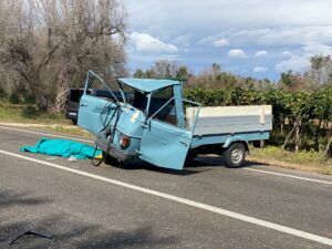 Le lancette dell’orologio avevano da poco segnato le 10.00. L’anziano si trovava al volante della sua Apecar sulla strada statale, di solito molto trafficata. Due corsie, a doppio senso di marcia, già teatro in passato di incidenti, anche mortali. Ad un certo punto, per cause ancora tutte da chiarire, il mezzo a tre ruote si è scontrato contro un furgone, terminando la sua corsa fuori dalla carreggiata.