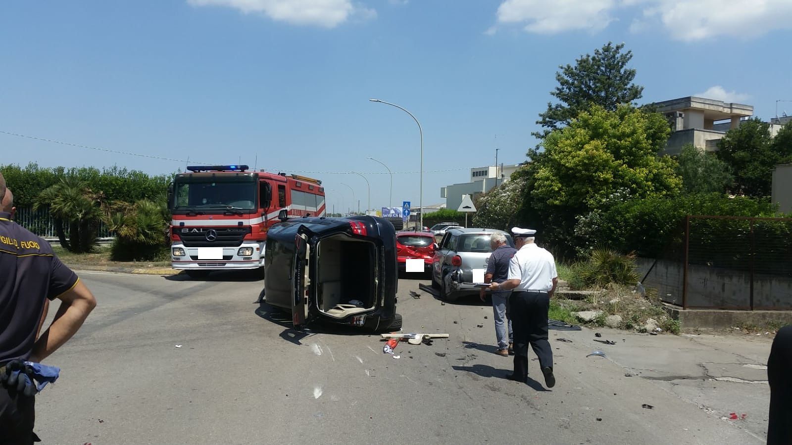 Nel pomeriggio di oggi, all’entrata del comune di Nardò, nei pressi del Tribunale, si è verificato un grave incidente stradale. Per cause ancora da chiarire alcune autovetture, sembrerebbe tre, sono entrate in collisione tra loro. Ad avere la peggio una Mercedes di colore nero che si è ribaltata. A causa del capovolgimento il conducente del mezzo è rimasto incastrato nell’abitacolo.