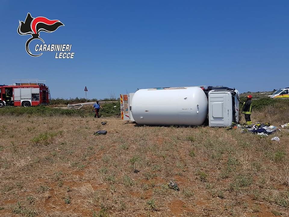Le lancette dell’orologio avevano da poco segnato le 11.30, quando all’altezza di Torre Sant’Emiliano una cisterna carica di Gpl si è rovesciata su un fianco. Un incidente che ha fatto subito pensare all’inferno di Bologna, in cui sono rimasti feriti alcuni poliziotti salentini.