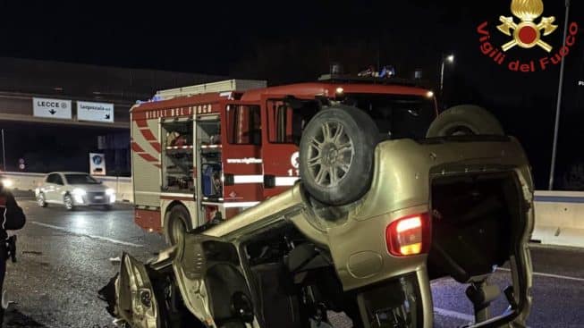 L’auto di fabbricazione italiana si è ribaltata. All’interno del veicolo si trovava una donna di 50 anni, rimasta incastrata nell’abitacolo. La stessa è stata estratta dai Vigili del Fuoco e affidata alle cure sei sanitari del 118, che dopo le prime cure in loco, l’hanno condotta presso l’Ospedale “Vito Fazzi” di Lecce in codice rosso.