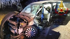 Le lancette dell’orologio avevano superato abbondantemente le 2.00, quando, una squadra dei Vigili del Fuoco del distaccamento di Veglie, è stata chiamata a intervenire sulla Strada provinciale 113 che conduce da Leverano a Porto Cesareo, in quanto, un’autovettura, una Fiat 500 L, era finita fuori strada andandosi a schiantare contro un albero di ulivo.