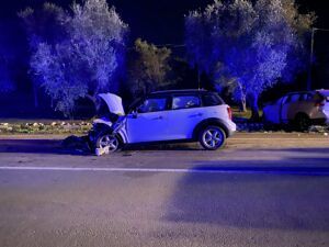 È drammatico il bilancio del terribile incidente stradale avvenuto sulla provinciale 145 che da collega Lecce a Melendugno. Non è ancora chiara la dinamica dell’accaduto, ma stando ad una prima ricostruzione a circa 1 chilometro dal centro abitato dalla cittadina dell’evento dell’estate si sono scontrate frontalmente due auto, una Mini Cooper e una Volvo XC 60, condotta da un noto avvocato del posto, che a causa dell’impatto violento, è andata a sbattere contro un albero di ulivo, dopo aver sfondato il muretto che delimita la carreggiata.