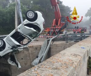 La strada litoranea che congiunge Torre dell’Orso a Otranto a causa dei suoi tornanti e spesso a causa della velocità di chi la percorre è un percorso tristemente noto per gli incidenti automobilistici che la contraddistinguono. Quello di questa notte, avvenuto alle 02.30 è sembrato particolarmente grave agli occhi dei Vigili del Fuoco del Distaccamento di Maglie che sono stati chiamati ad intervenire sul posto.Vi era una Fiat Punto ribaltata lungo il canale che collega i laghi Alimini con il mare. Fortunatamente i due occupanti, due ragazzi del 2000 e 2003 sono rimasti illesi. I Vigili del Fuoco hanno provveduto al recupero dell’autovettura.