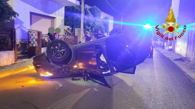 Sul luogo del sinistro, anche i Vigili del Fuoco del Distaccamento di Gallipoli, che hanno provveduto a mettere in sicurezza l’auto e la zona.