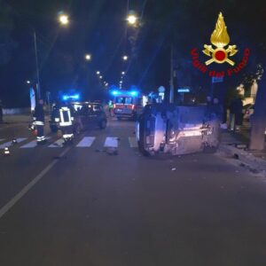 Le lancette dell’orologio segnavano all’incirca l’una, quando, per causa ancora da chiarire, in Viale Gallipoli, all’altezza dell’incrocio per immettersi in via Lombardia, due auto, una Renault Modus sulla quale viaggiavano cinque persone e una Fiat 500, con all’interno quattro persone si sono scontrate.