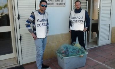 I militari dell’Ufficio Locale Marittimo di Torre Cesarea, dopo un appostamento notturno, hanno sorpreso in prossimità del lido Goa, un altro diportista intento a calare circa 400 metri di rete da posta ad una distanza di 50 metri dalla riva. Anche in questo caso, è stato sequestro l’attrezzo da pesca in quanto strumento non impiegabile dai pescatori sportivi e comminata una sanzione amministrativa dell’ammontare di mille euro.