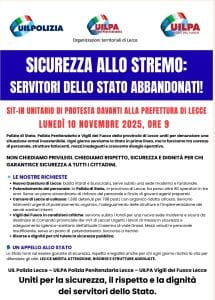 “Lecce merita attenzione, rispetto e sicurezza. Non si tratta solo di difendere i diritti dei lavoratori, ma di garantire il diritto dei cittadini a essere protetti da uno Stato efficiente e presente,” concludono i Segretari Generali Spedicato, Leone e De Giorgi.