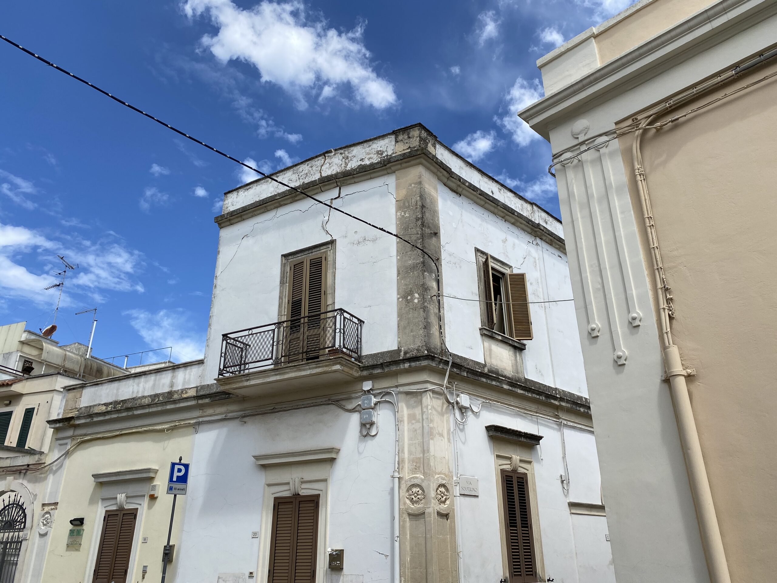 L’appartamento, che si sviluppa su due piani, si trova all’incrocio di due strade. È stato il tetto del primo piano a cedere. Sul posto sono intervenute subito le autorità competenti per limitare i danni. Le crepe, infatti, che si sviluppano lungo tutto il perimetro dell’appartamento, potrebbero causare ulteriori danni agli impianti elettrici e del gas.