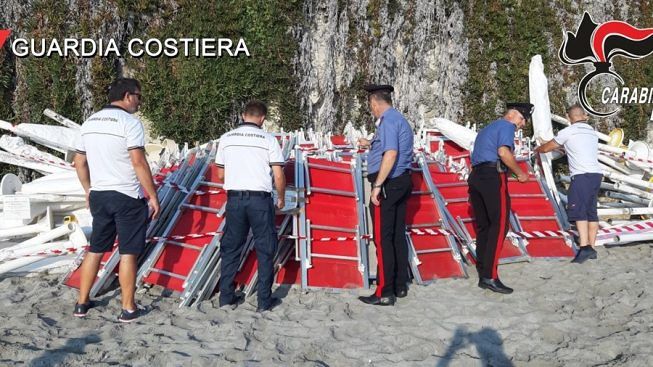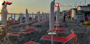 Alle prime luci dell’alba sono stati sequestrati 56 ombrelloni e 112 lettini che occupavano abusivamente il tratto di spiaggia libera.