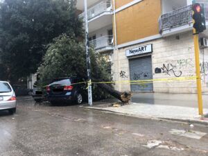 Forse l’allerta arancione era stata un po’ sottovalutata dai leccesi. Quando si era diffusa la notizia che le scuole sarebbero rimaste chiuse in molti avevano pensato alla solita ‘esagerazione‘. Bene ha fatto, invece, il Sindaco Carlo Saleveminia tenere chiusi i cancelli, vista la ‘furia’ con cui il maltempo si è abbattuto sul Salento. Nel capoluogo barocco, infatti, si è ripetuta la stessa drammatica scena di altri comuni salentini: disagi alla circolazione stradale a causa degli allagamenti o degli ‘ostacoli’ presenti sulla carreggiata e alberi spazzati via dal vento. In viale della libertà, ad esempio, un albero, letteralmente sradicato dalle raffiche, è precipitato sulle auto parcheggiate in strada.