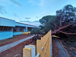 Al momento è presto per la conta dei danni, ma nelle prossime ore ne capiremo certamente di più. Grave quanto accaduto all’Istituto Comprensivo di Via Cantobelli che nell’ingresso laterale ha visto un albero di pino cadere e abbattere l’inferriata esterna.