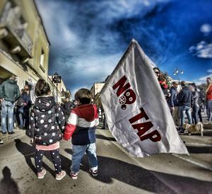 Mentre nel capoluogo del Piemonte si combatte contro la TAV, l’alta velocità, in Salento sul banco degli imputati c’è Tap, il gasdotto che dovrebbe entrare a regime dal 2020. All’appuntamento – fissato per le 10.30 in Piazza Pertini e terminato a Masseria del Capitano, dove sono in corso i lavori per la realizzazione del terminale di ricezione – si sono presentate più di mille persone, tra cui anche molte donne e bambini.