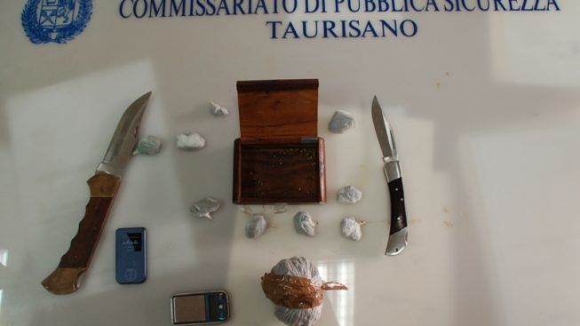 Da un ulteriore controllo, gli agenti hanno ritrovato nella tasca anteriore destra del giubbotto dell’uomo cinque involucri in cellophane bianco, anche questi contenenti della marijuana, mentre nella tasca sinistra altri quattro involucri in cellophane contenenti la stessa sostanza ed un coltello a serramanico di 21 cm. I poliziotti, quindi, hanno proceduto alla perquisizione domiciliare, che ha dato esito positivo in quanto è stata ritrovata una scatola in legno di marrone che al suo interno conteneva 46 semi di marijuana, un coltello a serramanico di 29 cm., con tracce sulla lama di marijuana e un bilancino di precisione elettronico.