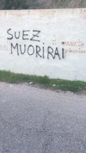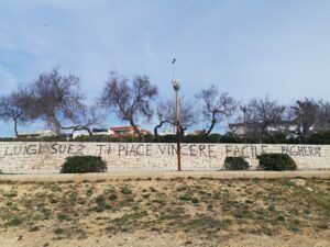 Non solo, poiché dieci giorni fa, sul lungomare di Gallipoli, è apparsa un’altra scritta minacciosa, questa volta avente come “destinatario” l’avvocato Suez.
