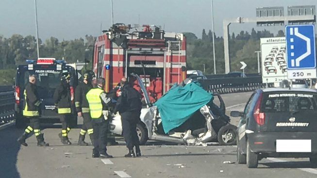 La vittima, Giovanna Buccoliero 59enne di Lecce, si trovava sul lato passeggero e viaggiava insieme a un’altra donna a bordo di una Fiat Punto, quando, per cause ancora da chiarire il veicolo è stato tamponato da un tir. L’impatto è stato devastante e l’autovettura si è praticamente accartocciata su stessa. La donna è morta sul colpo.