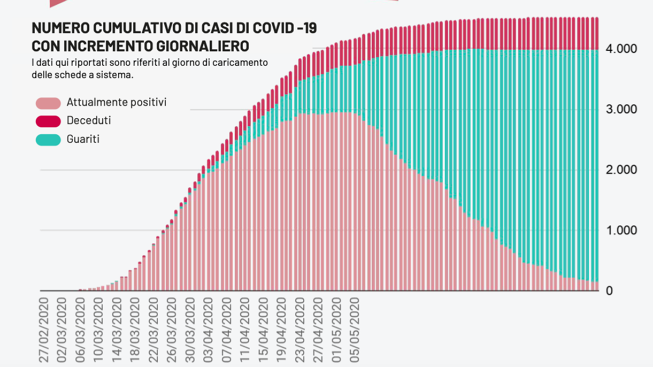 Dall’inizio dell’emergenza sono stati effettuati 173.422 test. Sono 3.841 i pazienti guariti.