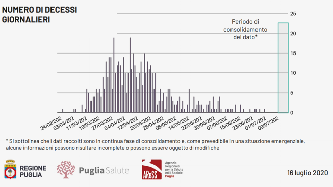 Ma questa non è l’unica cattiva notizia di oggi: dopo intere giornate di tregua, infatti, oggi è stato registrato un decesso in provincia di Lecce, per un totale che così sale a quota 548. Nemmeno oggi, poi, si segnalano guarigioni (il totale è sempre di 3.926).