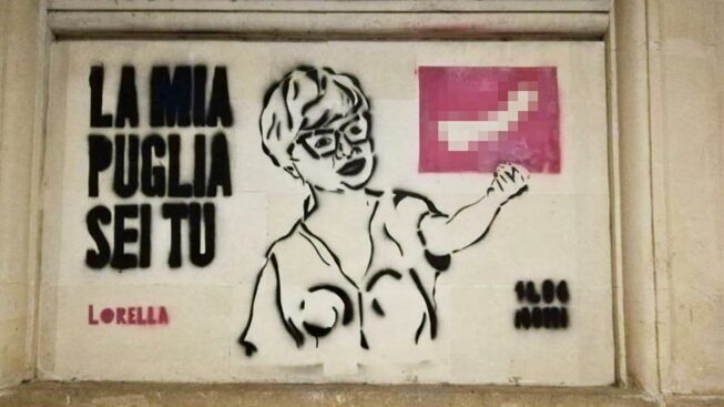 «Che schifo! Se questa è arte o satira politica ditemelo voi». Inizia con queste parole il post pubblicato sulla pagina Facebook di Loredana Capone, reduce dalla campagna elettorale che le ha permesso di conquistare un posto in Consiglio con quasi 14mila preferenze. Qualcuno, non certo un “artista”, ha riprodotto il suo manifesto su un muro del centro storico di Lecce, sporcandolo con un messaggio, anzi una offesa sessista. Sull’edificio che si affaccia in piazzetta Panzera, la Puglia è stata sostituita da un pene. Anche il nome dell’ex assessore al Turismo e alla Cultura è stato cambiato per diventare Lorella, ma è chiaro, chiarissimo che sia lei la destinataria del disegno.