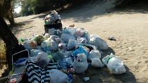 La gente di ritorno dalla spiaggia libera lascia i rifiuti nei cassonetti della pineta ormai stracolmi. Una brutta cartolina per i turisti che hanno sentito parlare della bellezza di Punta Prosciutto.