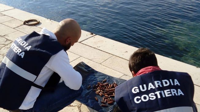 Questa mattina i militari della Guardia Costiera di Gallipoli unitamente a quelli dell’Ufficio locale marittimo di Torre Cesarea nell’ambito dei consueti controlli in collaborazione con il personale dell’Area Marina Protetta di Porto Cesareo hanno rinvenuto, all’interno di un secchio di plastica, occultato nel terreno antistante lo scivolo pubblico di Sant’Isidoro nel comune di Nardò, quattro chilogrammi di datteri di mare (Lithophaga lithophaga).