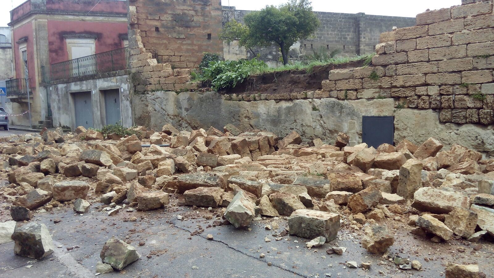Poi ci trasferiamo a Caprarica di Lecce, dove questa mattina alle prime luci dell’alba il muro di un’abitazione privata è crollato in parte in via Martano. Si tratta del muro perimetrale del giardino di un’abitazione adiacente al palazzo baronale.