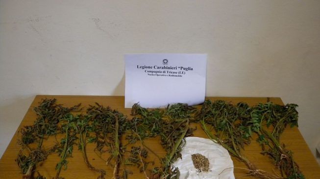 Tre sono state le denunce in stato di libertà, tra cui quella di C.M. 43enne, di Corsano il quale a seguito di perquisizione è stato trovato con gr. 4 circa di hashish, nonché in possesso di sette piante di marijuana già pronte per la lavorazione.