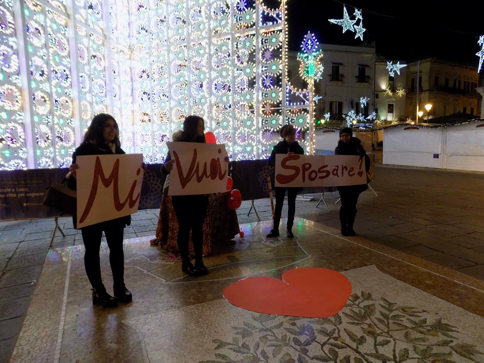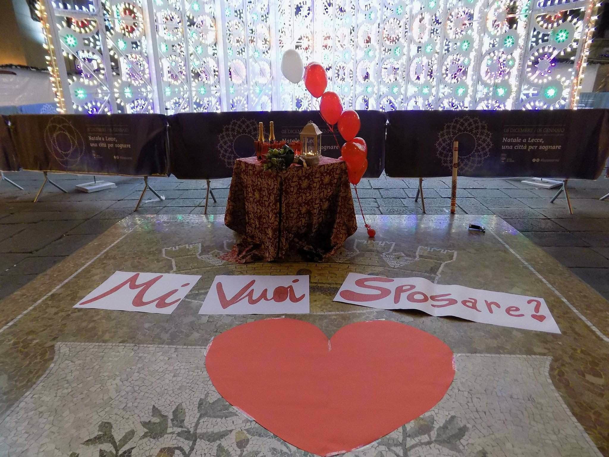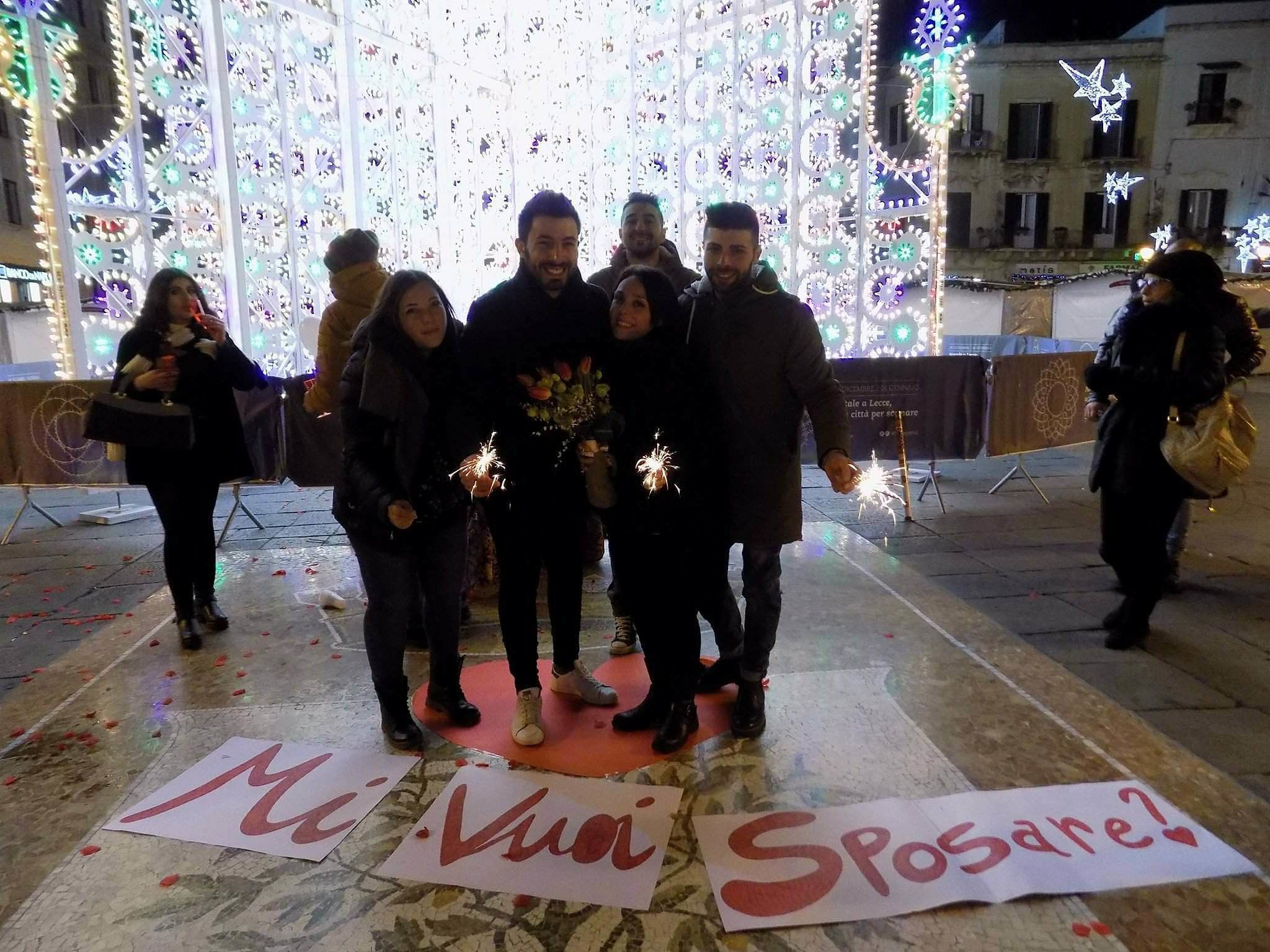Prima di buttarsi a capofitto nei preparativi del matrimonio, scegliere l’abito e il ristorante, curare ogni dettaglio del giorno più bello, Ivan ha voluto seguire la tradizione e chiedere la mano della sua dolce metà. Una proposta in grande stile che ha avuto come cornice la bellissima piazza Sant’Oronzo “vestita” a festa.