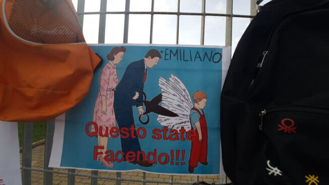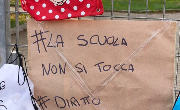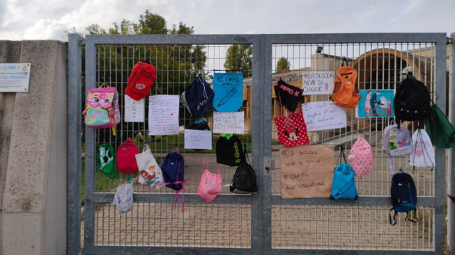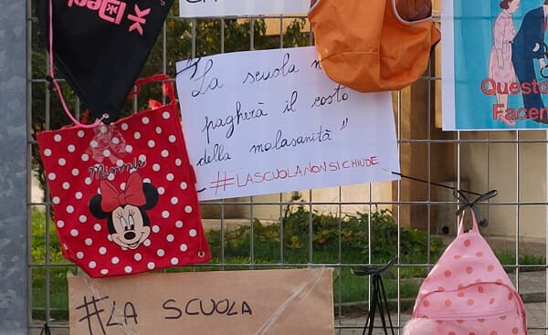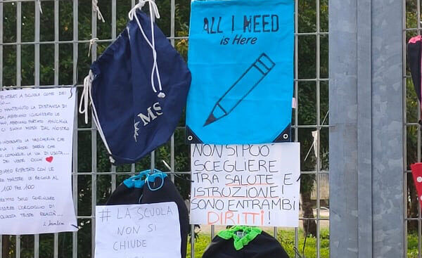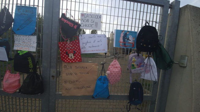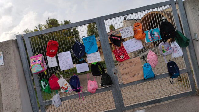 Ci sono poi i genitori, che hanno deciso di protestare in silenzio contro l’ordinanza firmata dal Governatore. Alle 8.00 hanno appeso uno zaino vuoto sui cancelli degli istituti, sperando – come si legge che sulla pagina facebook del Movimento «Priorità alla scuola» che ha organizzato la manifestazione – che le immagini possano pesare come macigni. Così come è stato per la foto di un bambino con il grembiule e la cartella seduto fuori dall’Istituto Matteo Mari di Salerno, chiuso dal Presidente Vincenzo De Luca. Simbolicamente andranno a riprenderlo alle 13.00, all’ora della fine delle lezioni.