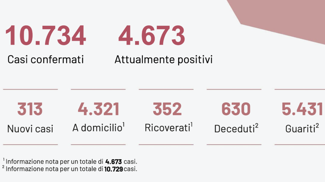 Il totale dei casi positivi Covid in Puglia è di 10.734, così suddivisi: