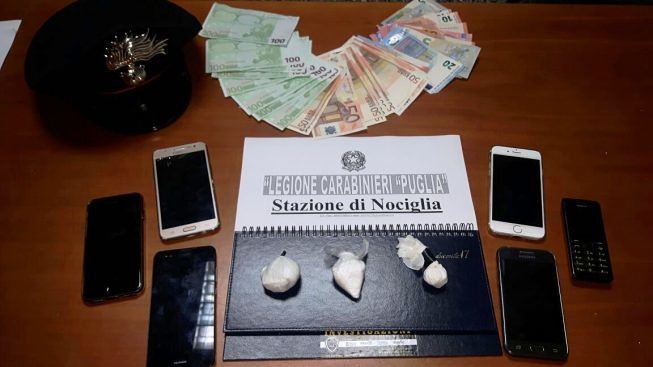 Entrambi i giovani, considerando che non erano mai stati notati nel comune e che erano appena usciti dall’abitazione di un uomo, sono stati prontamente controllati dagli operatori della Stazione nocigliese. Visti i numerosi precedenti specifici, sono stati sottoposti a perquisizione personale e veicolare. Il controllo ha permesso di trovarli in possesso di circa 2.200 euro in contanti che i Carabinieri ritengono siano provento della presunta attività di spaccio. A ciò si aggiunge la successiva perquisizione nell’abitazione dell'uomo che ha fatto emergere il ritrovamento e sequestro di circa 30 grammi di sostanza stupefacente del tipo cocaina suddivisi in quattro involucri, presumibilmente appena acquistata dai due fermati.