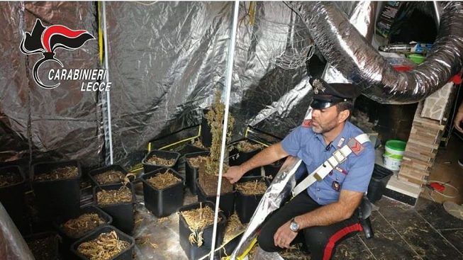 C’era di tutto: cinque teli in plastica, tre plafoniere, dieci metri di tubi per l’irrigazione e l’areazione e, per finire, venti vasi contenenti residui di altrettante piante essiccate di marijuana.