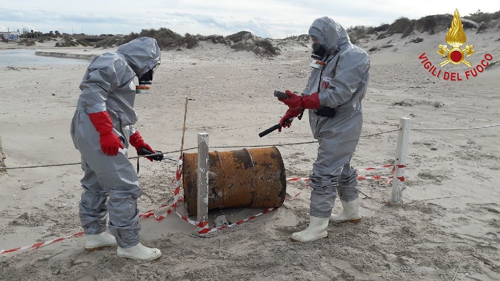 Nessuno poteva sapere se quel fusto metallico, abbandonato sull’arenile, fosse pericoloso o meno. Per questo, è stato necessario l’intervento dei Vigili del Fuoco di Lecce che si sono precipitati, in località “Spiaggiabella” per fare luce su quello strano ‘ritrovamento’.