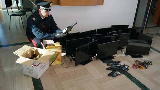 Dopo gli accertamenti preliminari svolti sul posto, ritenendo che il materiale fosse di provenienza furtiva, la perquisizione è stata estesa all’abitazione dell’uomo, dove, all’interno di una stanza di sua pertinenza, sono stati ritrovati altri 14 tv Lcd completi di telecomando e 12 grammi di marijuana con bilancino e materiale vario per il confezionamento delle dosi.