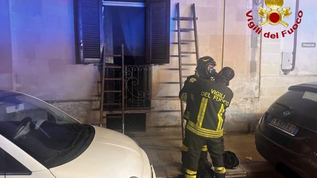 Incendio a Lecce in un appartamento di via Nizza: donna intrappolata salvata dai Vigili del Fuoco. Fiamme causate da un possibile cortocircuito.