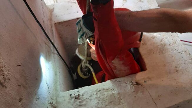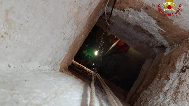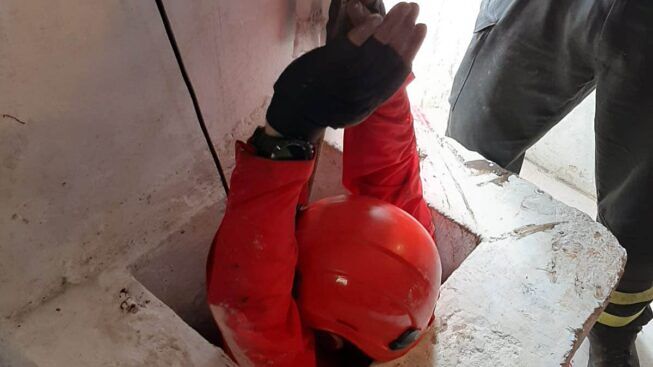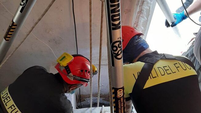Poco più di quaranta centimetri, la misura dell’apertura di bocca della cisterna per la raccolta dell’acqua e neanche tanto sufficiente al passaggio di una persona adulta, ha richiesto da parte della squadra speciale la verifica iniziale di accertamento della respirabilità dell’aria, a causa dell’ambiente confinato ed angusto.
