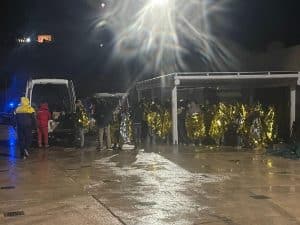 Nonostante la pioggia battente i migranti, in mare da oltre cinque giorni, sono stati posti al riparo e ristorati dai volontari della Croce Rossa del Comitato di Lecce e una volta terminate le procedure di riconoscimento, trasferiti presso i centri di prima accoglienza.