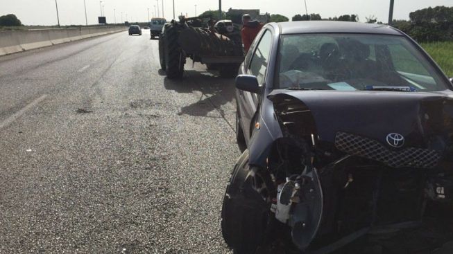 Le dinamiche del sinistro risultano ancora al vaglio delle forze dell’ordine. Un primo quadro ufficioso esiste già, sebbene si attende conferma ad opera dei Vigili Urbani intervenuti per i rilievi del caso. Incidente stradale che, molto fortunatamente, non ha determinato gravi conseguenze. Possono dunque tirare un sospiro di sollievo le persone coinvolte nello scontro – avvenuto stamattina in Tangenziale Est, all’altezza dello svincolo per Frigole – tra una Toyota Yaris e un trattore. Stando ad una ricostruzione iniziale dell’accaduto – che, ripetiamo, deve ancora trovare l’ufficialità – il conducente della vettura ne avrebbe improvvisamente per il controllo, sbattendo sul guardrail di cemento; da qui, facendo leva sulla potenza dell’impatto, si è determinato un testacoda terminato proprio contro il macchinario agricolo che viaggiava lungo lo stesso tratto.