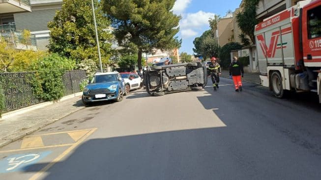 L’impatto è stato talmente forte da far perdere il controllo a uno dei conducenti: una delle due auto coinvolte, infatti, si è ribaltata su un fianco al centro della carreggiata, bloccando il passaggio.