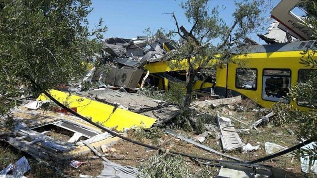 Una tragedia immane. Lo scenario che si è aperto agli occhi delle squadre dei vigili del fuoco e delle forze dell’ordine intervenute è stato devastante: le prime carrozze sono quasi irriconoscibili, ridotte ad un ammasso di lamiere accartocciate. «Interi vagoni sbriciolati nell’impatto, vetri infranti, pezzi volati per decine di metri nella campagna e sangue dappertutto: è una scena surreale» ripete chi si trova sul posto, ma basta poco per capire che si tratta di uno degli incidenti ferroviari più gravi della storia del Paese.