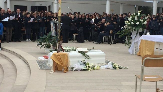 Un corteo di bambini ha accompagnato il piccolo ometto dalla sua abitazione fino all’oratorio Giovanni Paolo II, dove è stata allestita la camera ardente. Alle 15.30 sono stati celebrati i funerali sul sagrato della parrocchia ‘Santa Famiglia’ in via Jacopone da Todi.
