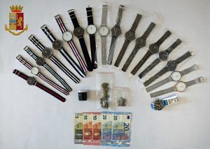Bloccato immediatamente dagli agenti, l’uomo è stato perquisito. Addosso sono stati rinvenuti circa 3 grammi di marjiuana e 18 orologi con marchi contraffatti di famose griffes. Non solo aveva con sé anche 70 euro, tutto sottoposto a sequestro.