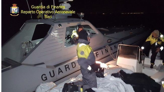 In particolare, alle 18.30 circa, i finanzieri di due vedette veloci del Reparto Operativo Aeronavale della Guardia di Finanza di Bari hanno fermato un potente gommone carico di colli di sostanza stupefacente, abilmente occultati sotto un telone plastificato.