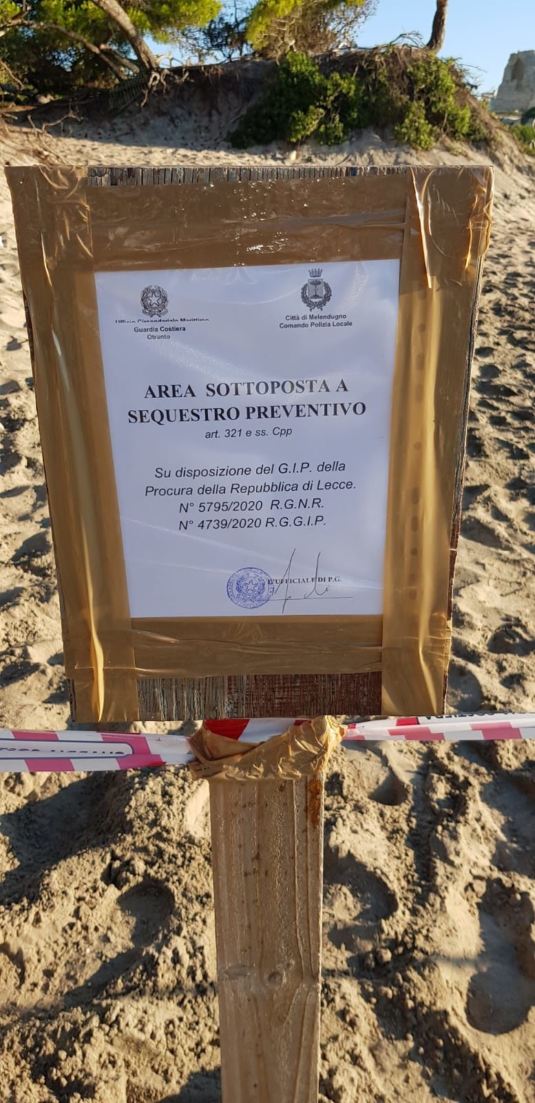 Nello specifico, a seguito delle attività di polizia giudiziaria eseguite con l’ausilio dell’Ufficio Tecnico del Comune di Melendugno e della Locale Polizia Municipale, è stato accertato, per una lunghezza di circa 80 metri, la presenza di pietrame, conci di tufi e sacchi di tela sintetici.