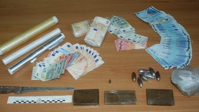 Erano intenti a contare alcune mazzette di denaro, che stavano provvedendo a sigillare all’interno di carta trasparente, quando, improvvisamente, hanno fatto irruzione gli agenti della Sezione Volanti della Questura di Lecce che, dopo aver perquisito accuratamente l’abitazione in cui si trovavano, dentro il bagno adiacente alla cucina, hanno rinvenuto un proiettile calibro 7,65, mentre, all’interno della cucina, nascosti in due scatole, tre panetti di hashish e otto ovuli.